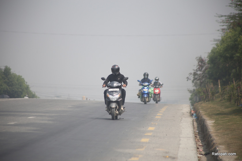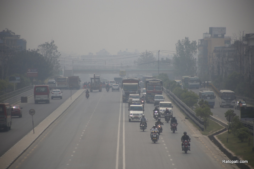 ती राजमार्गमा सडक चौडा पार्ने र पूर्वाधार बनाउने काम भइरहेकाले धुलो उड्दा वायु प्रदूषण भइरहेको छ। काठमाडौं उपत्यकाभित्रै पनि तार भूमिगत गर्ने, फुटपाथ बनाउने लगायतका काम भइरहेकाले वायु प्रदूषणलाई सघाएका छन्।