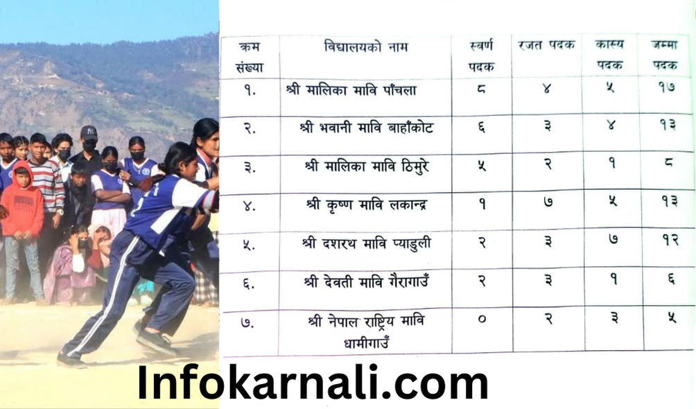 प्रतियोगितामा मालिका माध्यामिक विद्यालय पाँचलाले प्रथम स्थान हासिल गरेको छ । उक्त विद्यालयले ८ स्वर्ण, ४ रजत र ४ कास्य गरी कुल १६ पदमा जितेर प्रथम स्थान दर्र्ज गराउन सफल भयो ।
