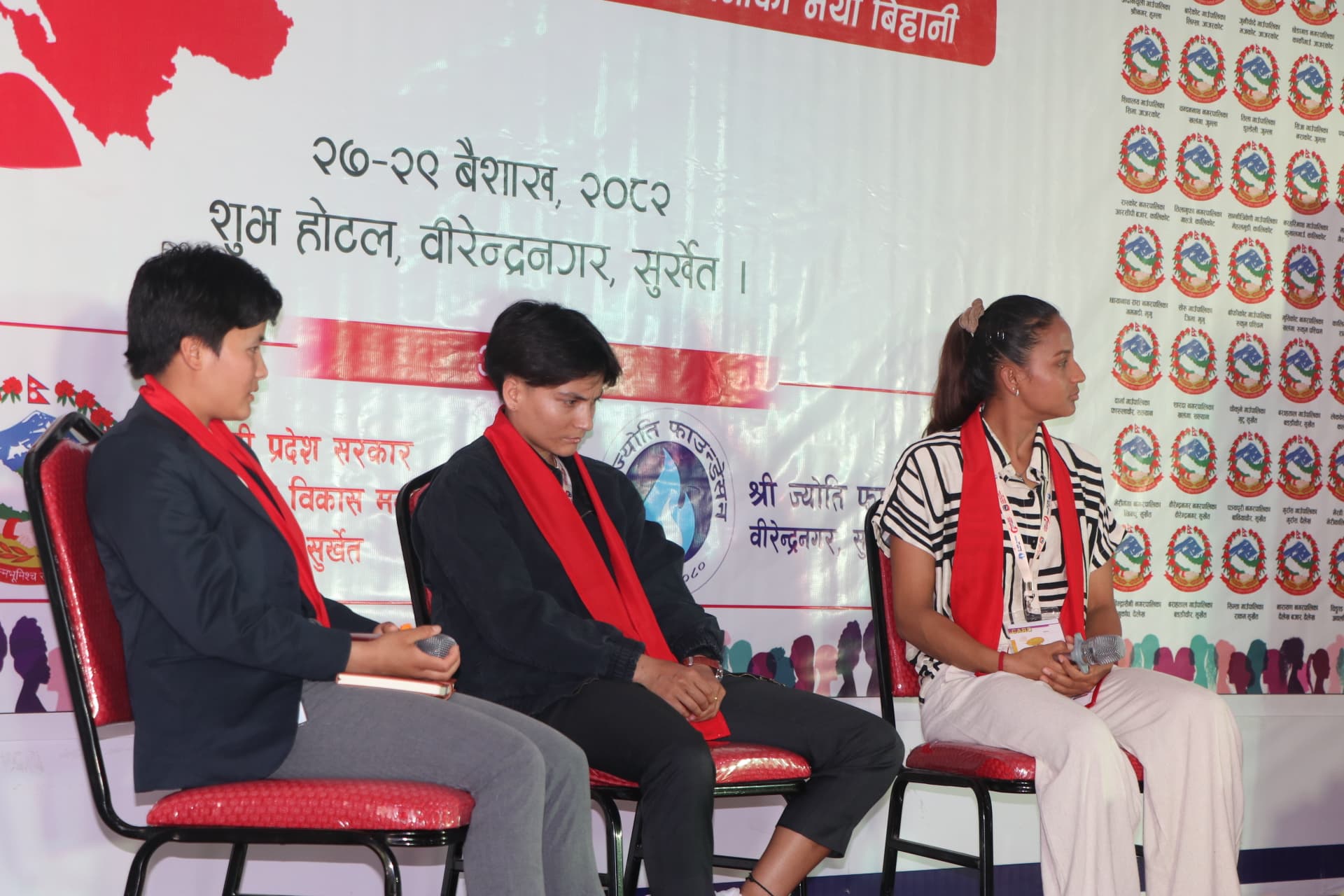 ‘स्कुलदेखि नै खेल खेल्थें । खेल भनेको केही पाउनका लागि मात्र खेलिदैन । हामीलाई खेलले अनुशासन सिकाउँछ । खेल खेलेर के हुन्छ ? भन्छन् नबुझेका मान्छेहरु । एक कुशल खेलाडी हुन धेरै चुनौति पनि छ । हाम्रा समस्याहरु पनि थुप्रै छन् । प्रशिक्षणदेखि विभिन्न प्राविधिक पक्षमा महिलालाई निकै चुनौती झेल्नु परेको छ । अन्तराष्ट्रियस्तरमा भएका अभ्यासको तुलनामा हामी नेपाली महिला धेरै पछाडि छौँ,’ सत्रका सहजकर्ता पत्रकार मधुवन विसीले खेलकुदमा छोरीका सम्भावना र चुनौतीका विषयमा राखेको प्रश्नको जवाफ दिदै विष्टले भनिन् ।