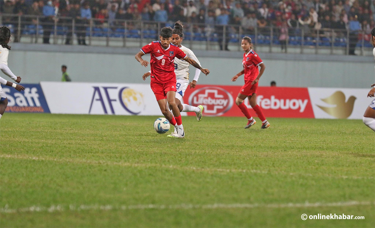 नेपाललाई अघिल्लो चरणमा पुर्याउन रेखा पौडेलले दुई गोल गरिन्। यस्तै, सविता रानामगर, सावित्रा भण्डारी र अमिषा कार्कीले समान एक गोल थपे।?कउबल;श्रप्रतियोगिताकै कमजोर टोलीमाथि एकपक्षीय हामी हुँदै नेपालले दर्जन बढी अवसर सिर्जना गरेको थियो। तर, तालमेल नमिल्दा नेपालले सिर्जना गरेको अवसरअनुसार स्कोर भने निकाल्न सकेन। यद्यिप, आठौं मिनेटदेखि नेपालले लिएको दबाबसामु श्रीलंका खुलेर खेल्न सकेन। नेपालले सुरुआती अग्रता काउन्टर अट्याकमार्फत अग्रता लियो। सवित्राले राइट साइडबाट एक डिफेन्डर छक्याउँदै दिएको बललाई सवितता रानामगरको लेफ्ट फुटेट वान टच गोलमा परिणत भयो।